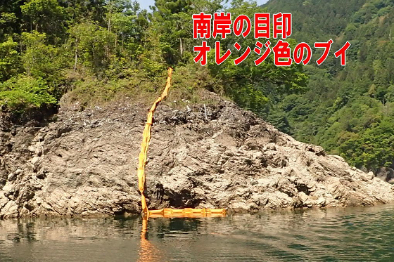 土佐町デッドスローエリア境界線目印 デッドスローエリア(通称:パドリングエリア)の境界は、ダム湖北岸のオレンジ色のブイ(従来と同じ場所)から上吉野川橋下流のワンド入り口前の岬の延長線上となります。 スポーツエリアは上吉野川橋上流からとなっています。 ※必ずご確認くださいますようお願いします。早明浦ダム湖面利用規則等が遵守されない場合は、湖面の利用が制限される場合があります。